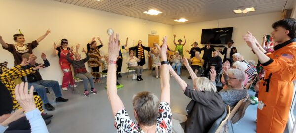 Heute um 10.05 Uhr haben wir im APH Riva die Fasnacht eingeläutet. Nach einem beschwingten Sitztanz besuchte unser Team die Bewohnenden im Mehrzweckraum zu einem gemeinsamen Gute‑Laune‑Tanz. Anschliessend zog eine fröhliche Polonaise durchs Haus.