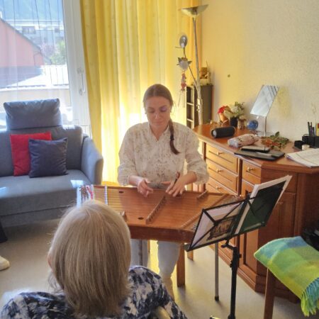 Am 16. April 2025 durften wir zum zweiten Mal die Musik Spitex bei uns begrüssen. Dieses Mal brachte Musikerin Irina ihr Hackbrett mit, und schon beim ersten Klang begann die Magie. Die Bewohnerinnen und Bewohner lauschten den wunderschönen Melodien und liessen sich von den zauberhaften Klängen verzaubern.