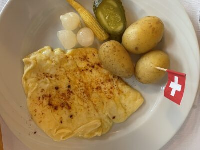 Auch dieses Jahr war es uns leider nicht vergönnt, im Garten zu Mittag zu essen. Stattdessen genossen wir das feine Raclette im gemütlichen Speisesaal, begleitet von musikalischer Unterhaltung des Trios «Mir 4». Nach dem köstlichen Raclette gab es eine Auswahl an verschiedenen, feinen Desserts, die keine Wünsche offen liessen.