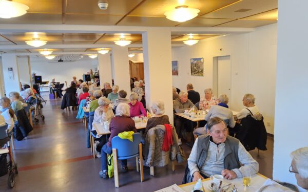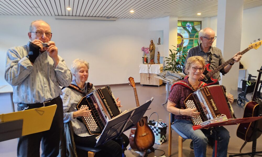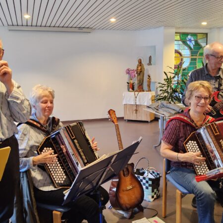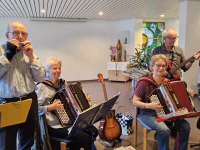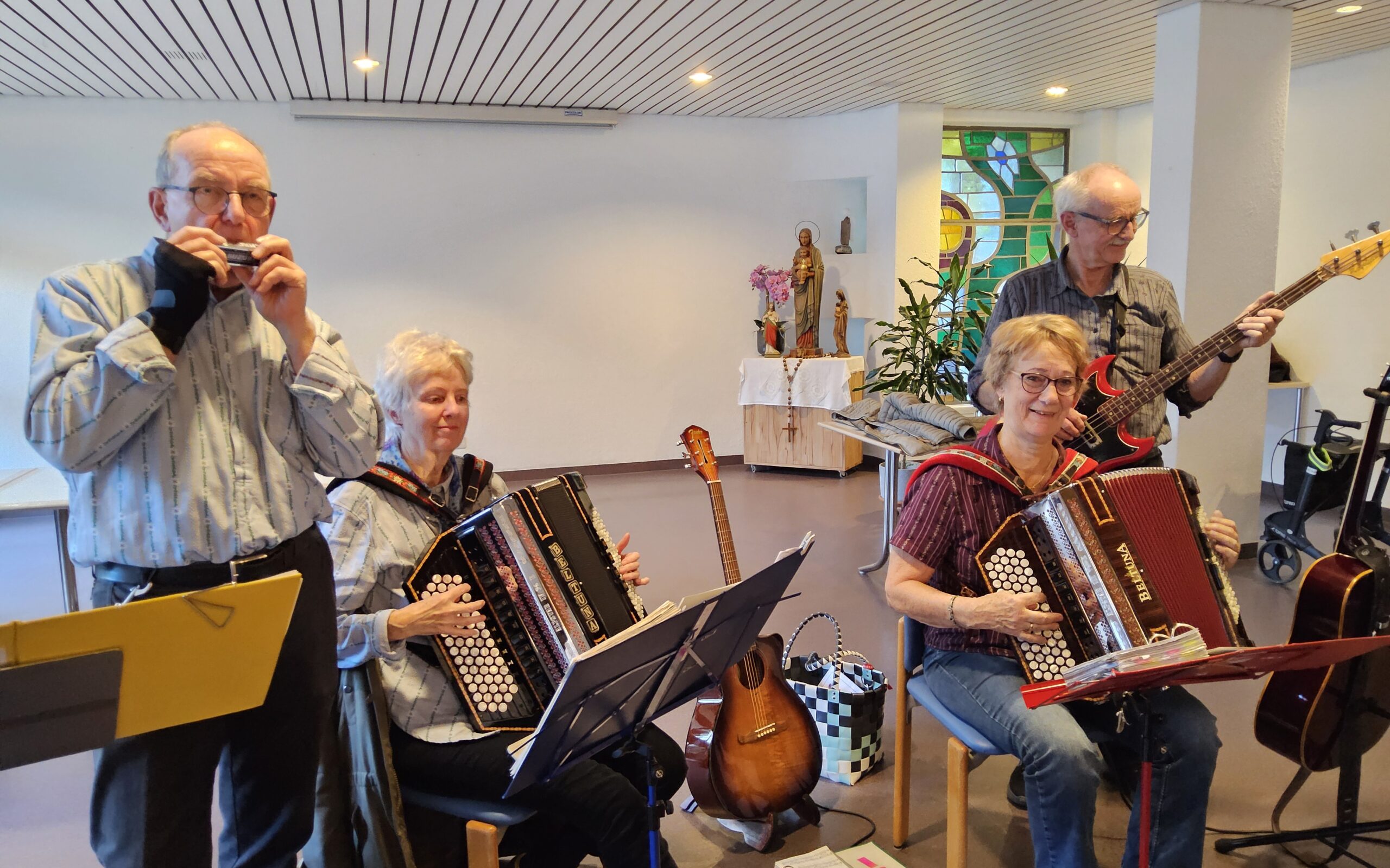 Der Speisesaal war gefüllt mit Bewohnenden des Hauses und den Senioren. Musikalisch wurden wir von der Musikgruppe Musigfründe us Gams unterhalten, und es wurde kräftig mitgesungen.