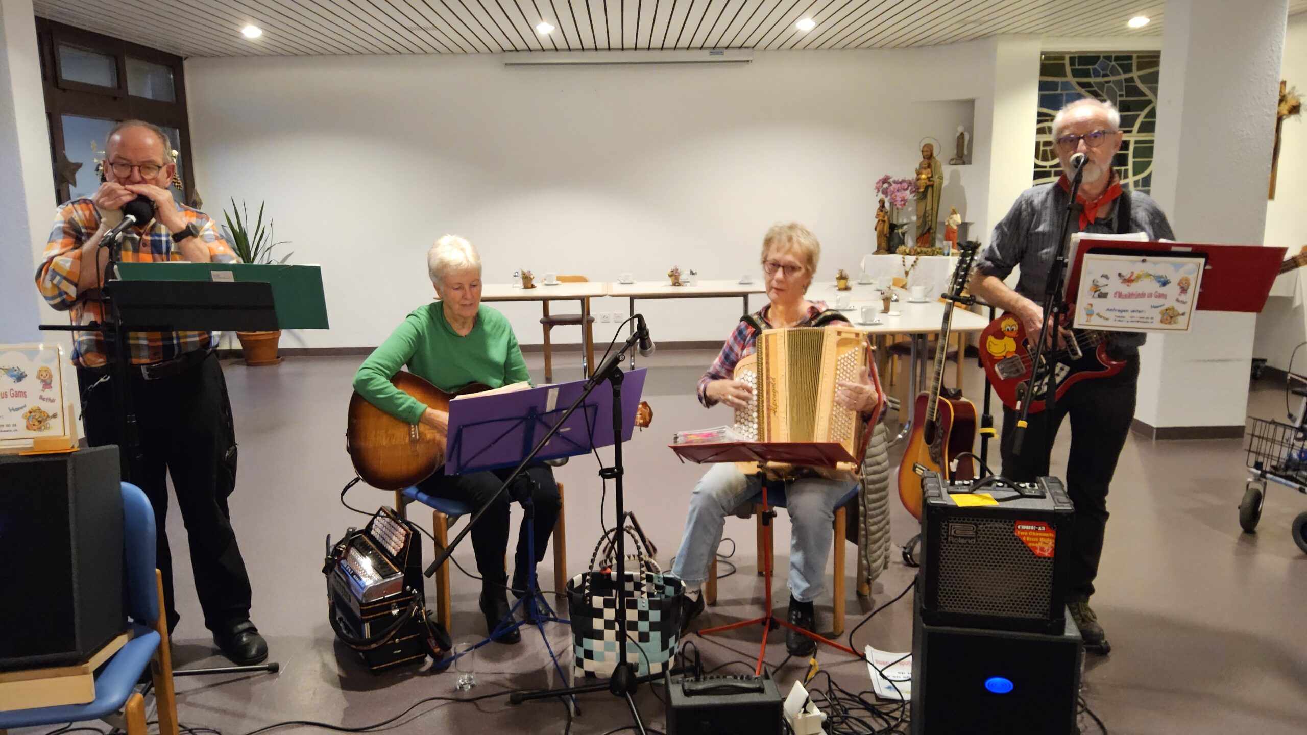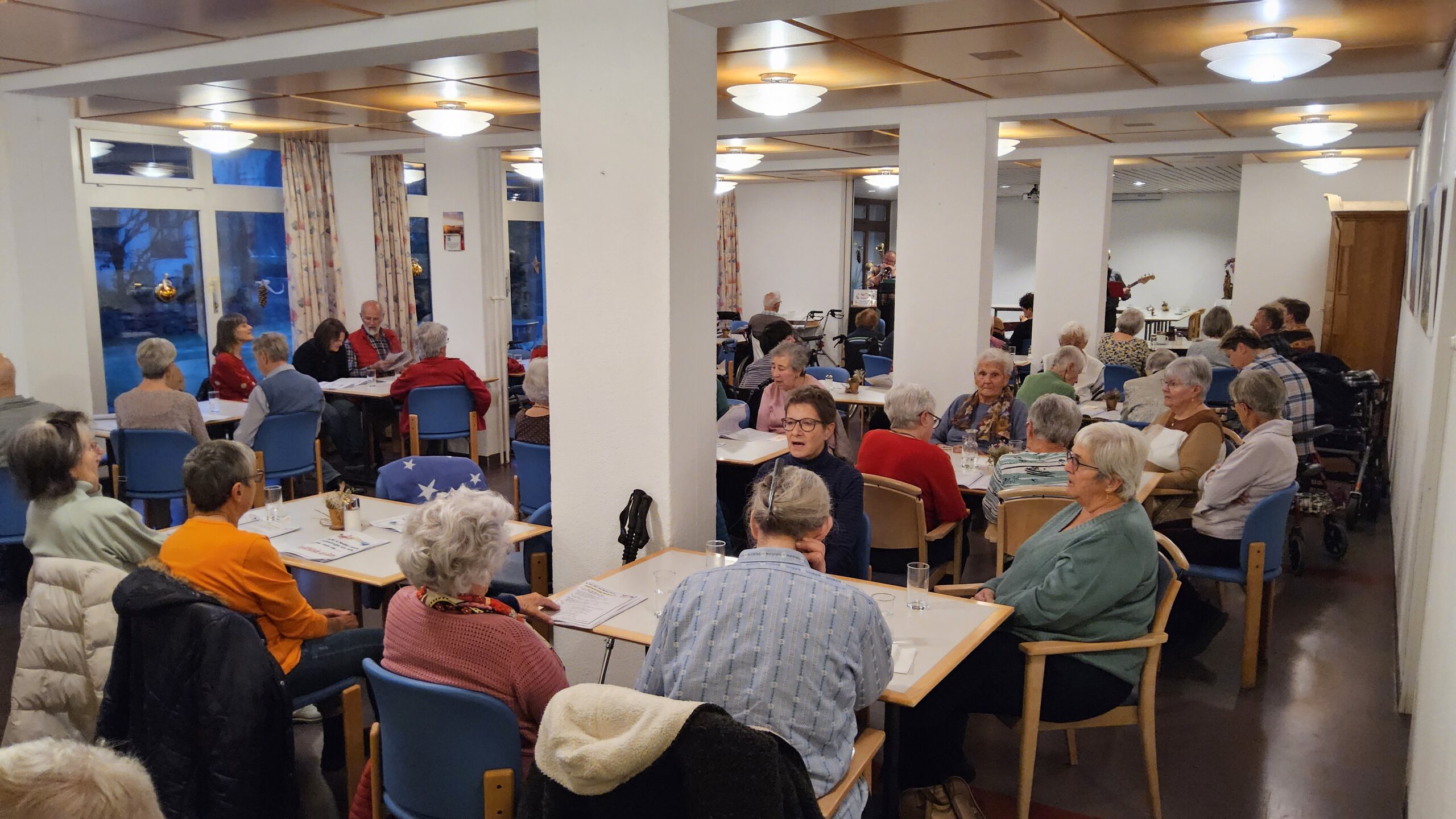Am 21.11.2024 hatten wir Besuch von der Gruppe Senioren 60plus. Musikalisch wurde der Nachmittag von den Musikfreunden aus Gams begleitet. Gemeinsam sangen, tanzten und schaukelten wir. Dank der köstlichen Kuchen, die die Senioren 60plus mit ins Riva brachten, genossen wir diesen gemütlichen Nachmittag in vollen Zügen.