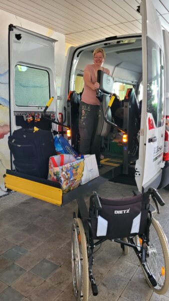 Mit acht Bewohnerinnen und Bewohnern sowie zwei angehörigen Personen, einer IDEM-Helferin und fünf Mitarbeitenden starteten wir heute in die Ferien. Die erste von zwei Reisegruppen wird bis am Samstag, 9. September 2023 Bewohnendenferien auf dem Urlaubshof Scherer in Deggenhausertal, Deutschland verbringen.