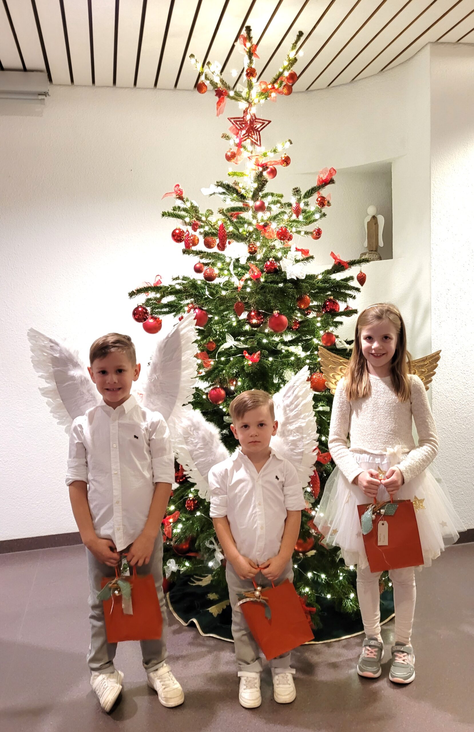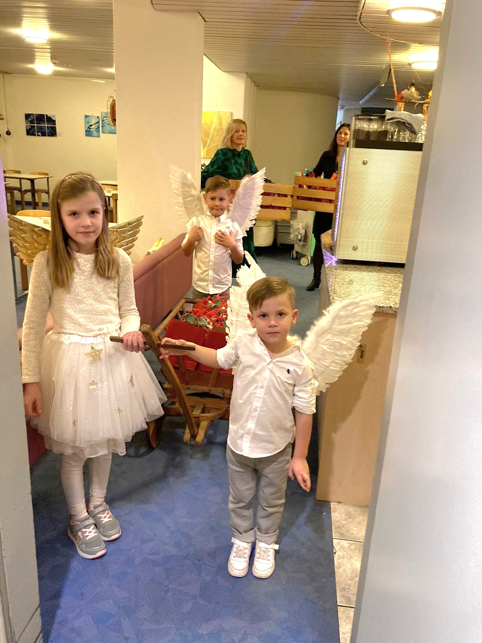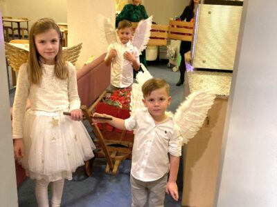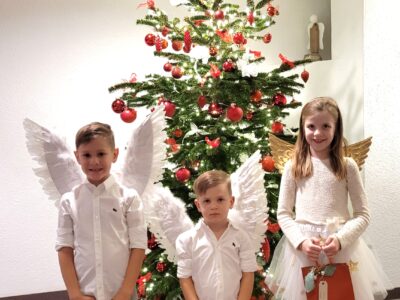Höhepunkt der Feier war zweifellos der Besuch der drei Engel, welche den Bewohnenden die Weihnachtsgeschenke überreichten. Die Freude und die strahlenden Gesichter unserer Bewohnenden beim Entgegennehmen und Auspacken waren unbezahlbar.