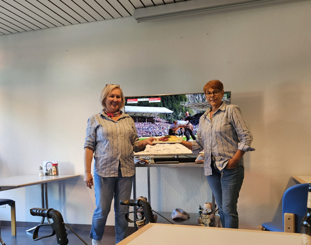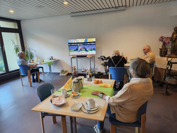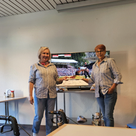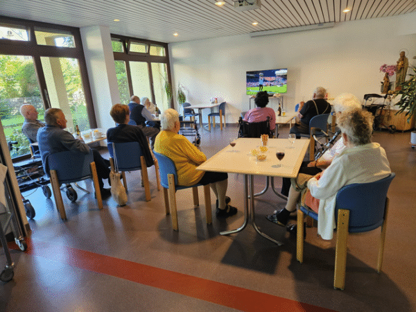Am vergangenen Samstag und Sonntag stand bei uns im APH Riva alles im Zeichen des Eidgenössischen Schwingfestes. Für die ganztägigen Live-Übertragungen haben wir unseren Speisesaal kurzerhand in eine kleine „Schwingerarena“ verwandelt. Im TV konnten die Bewohnenden die Wettkämpfe hautnah mitverfolgen.