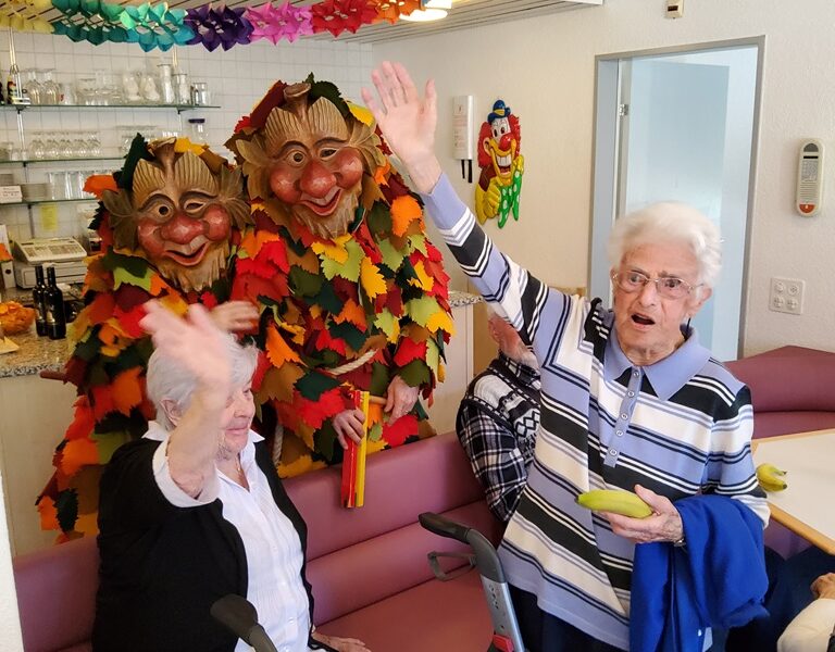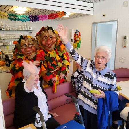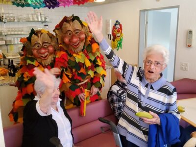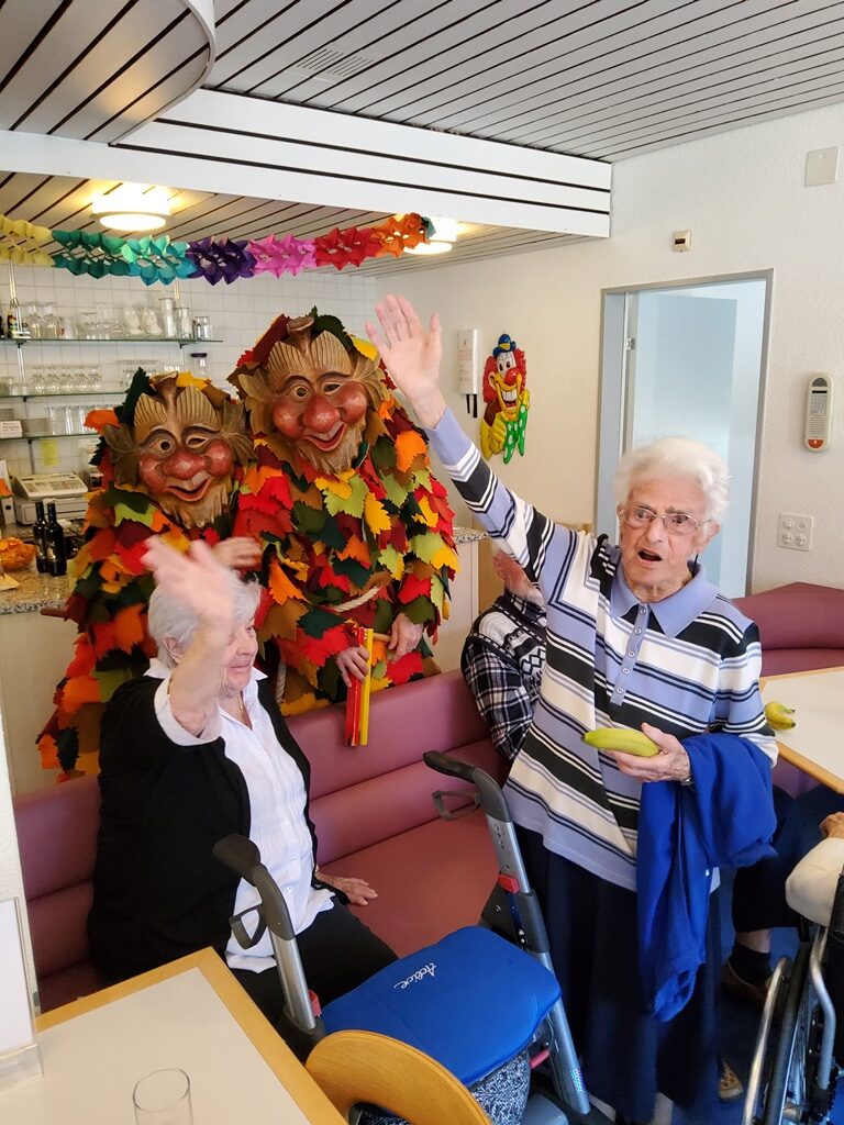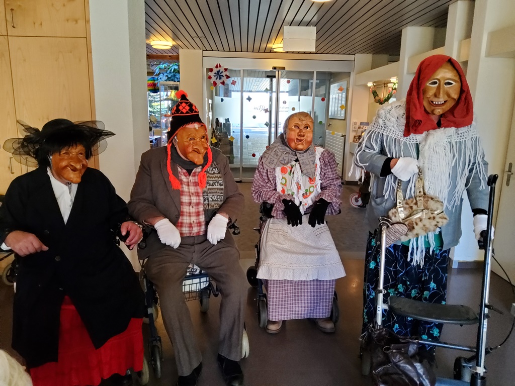 Zum Abschluss von dieser Fasnacht kamen die Wyygeister und nochmals die Röllis am Dienstagmorgen in die Cafeteria und unterhielten die Bewohner*innen bei Gesang und Tanz.