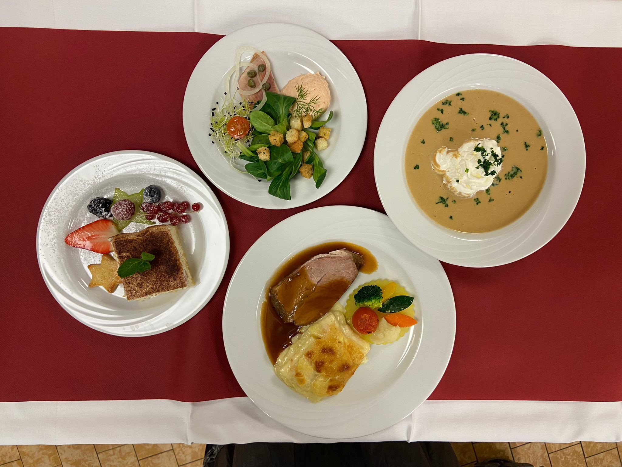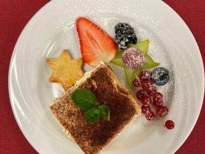 Die Bewohnerinnen und Bewohner wurden auch dieses Jahr an wunderschön dekorierten Tischen mit einem köstlichen und optisch sehr schön angerichteten Weihnachtsmenü verwöhnt.