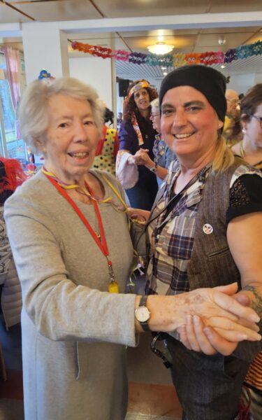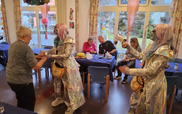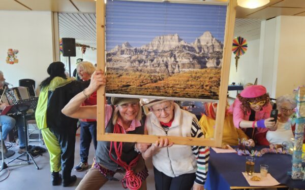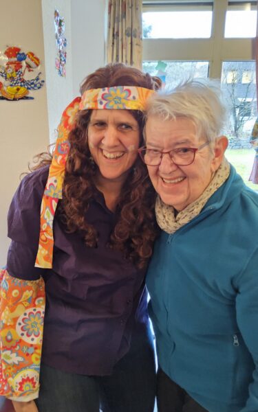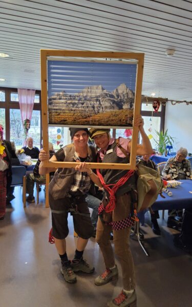 Diejenigen, die gerade nicht das Tanzbein schwangen, hatten bei den „Buzis“ alle Hände voll zu tun und sorgten bei Bewohnenden und Gästen für viele fröhliche Begegnungen und herzliche Momente. Im Speisesaal herrschte ein buntes und lebendiges Fasnachtstreiben.