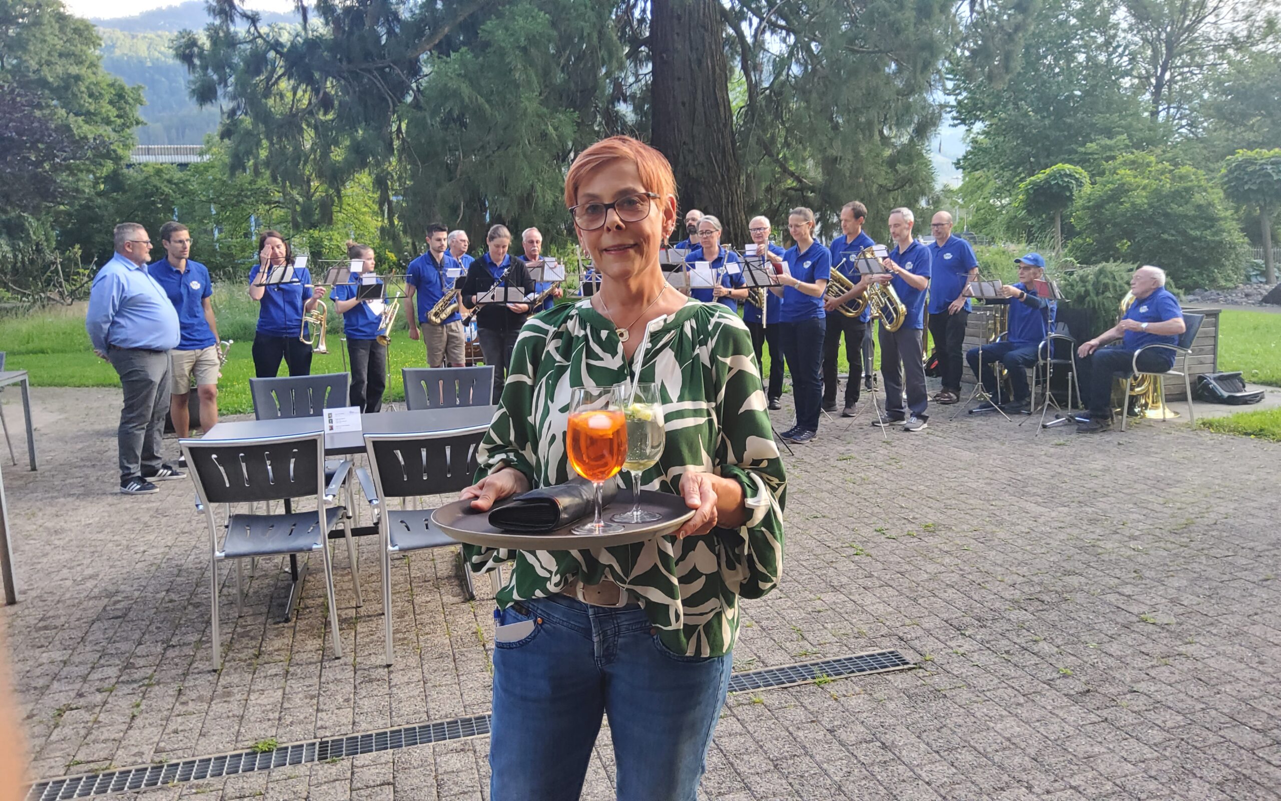Bei schöner Abendstimmung genossen die Bewohnenden des APH Riva und die Gäste bei einem Gläschen Wein das tolle Konzert.