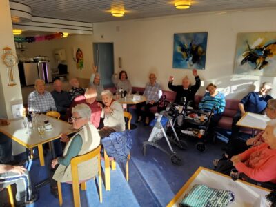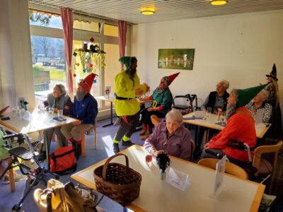 Am Montagnachmittag waren dann die legendären Rölli’s bei uns zu Besuch im Riva. Auch durfte das Rölli Bölli Suppechnölli nicht fehlen, das tatkräftig von den Bewohner*innen unterstützt wurde. Anschliessend besuchten uns die Zwerge mit Musik, Gesang und Leckereien.