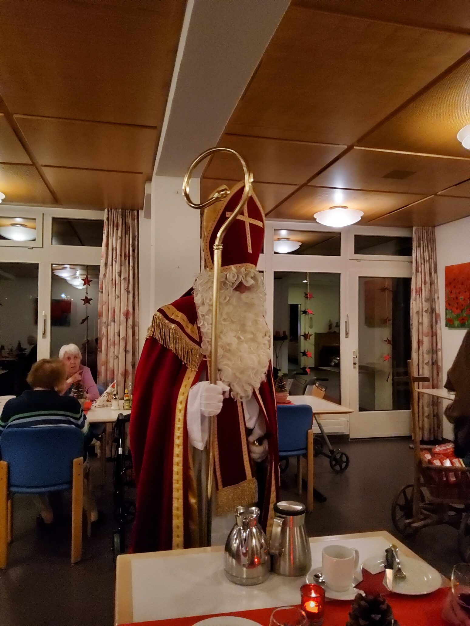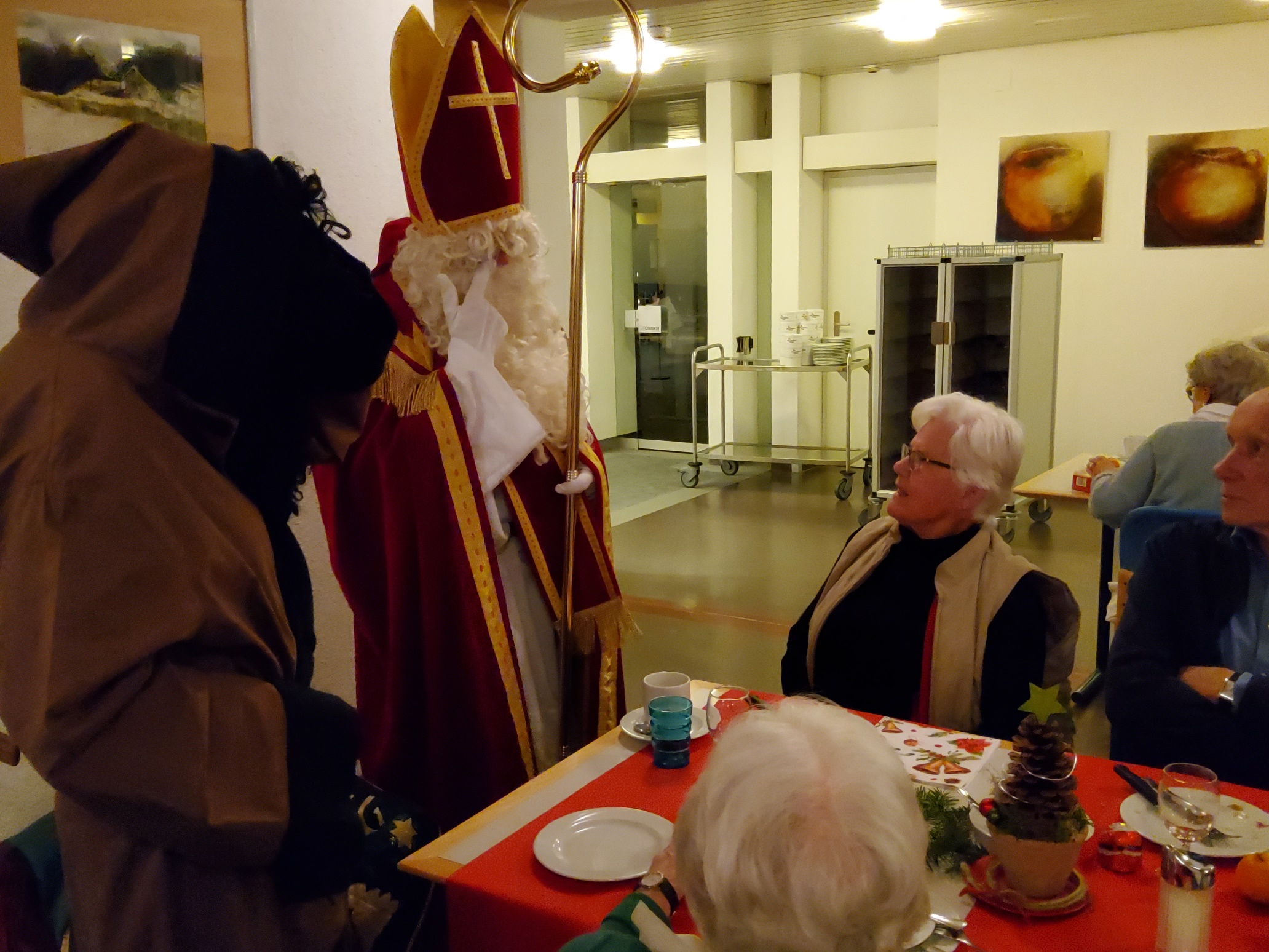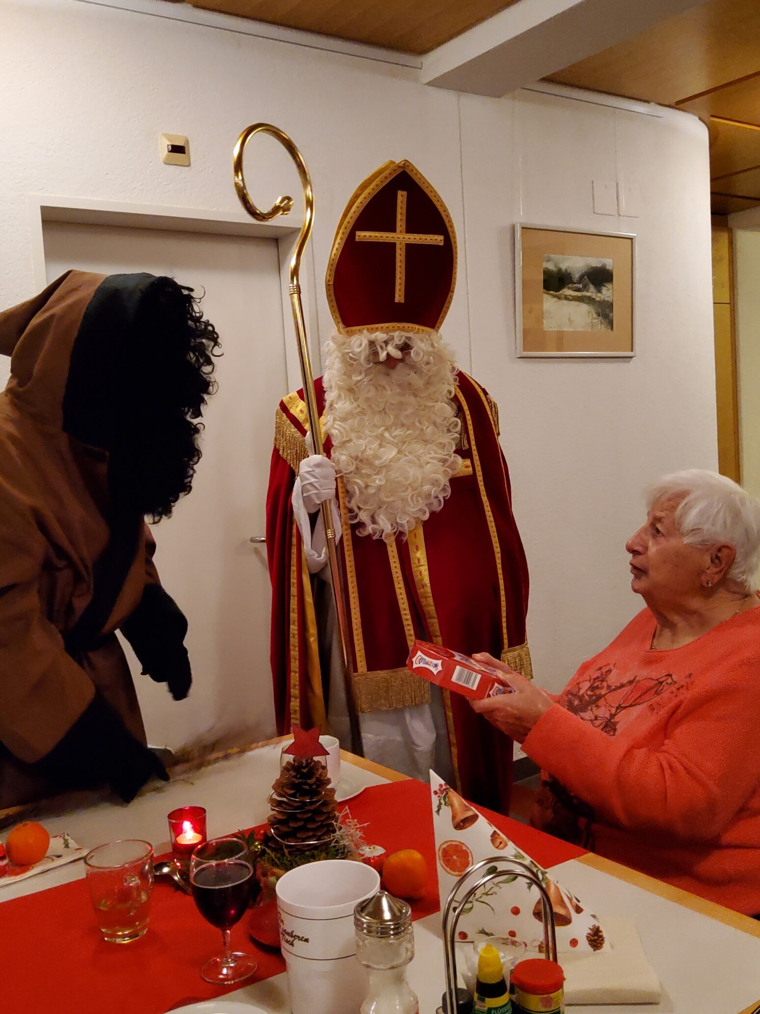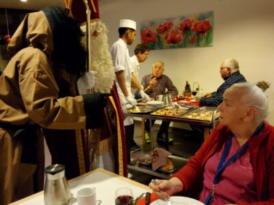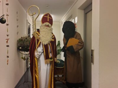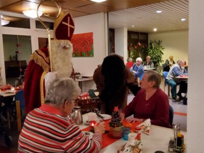 Am 6. Dezember 2022 hat das Alters- und Pflegeheim Riva besuch vom Samichlaus und seinem Gefährten dem Schmutzli erhalten. Sie kamen mit einem Wagen voller Überraschungen und brachten die Augen der Menschen im Riva zum Leuchten und zauberten ein Lächeln auf die Gesichter. Die Bewohner*innen haben sich sehr über den Besuch gefreut und konnten auch das eine oder andere mit dem Samichlaus austauschen. Es war ein schöner und stimmungsvoller Abend mit viel Freude in aller Gesichter. Herzlichen Dank, lieber Samichlaus und lieber Schmutzli, für Euren Besuch und bis im nächsten Jahr!