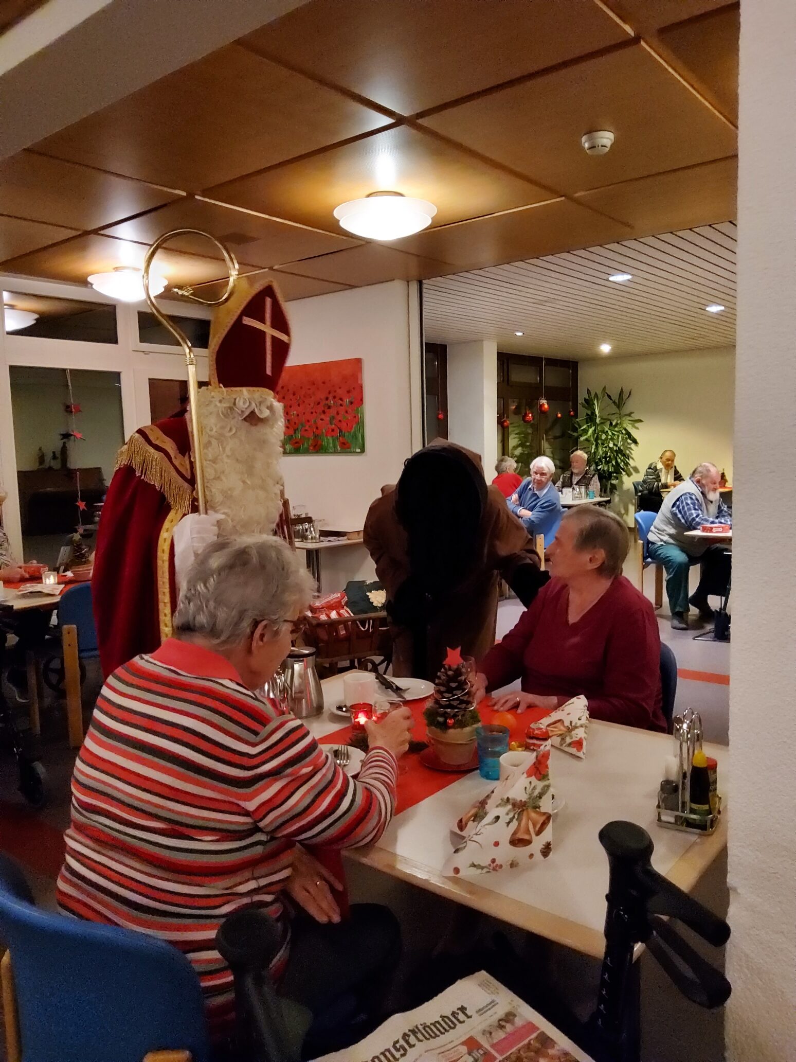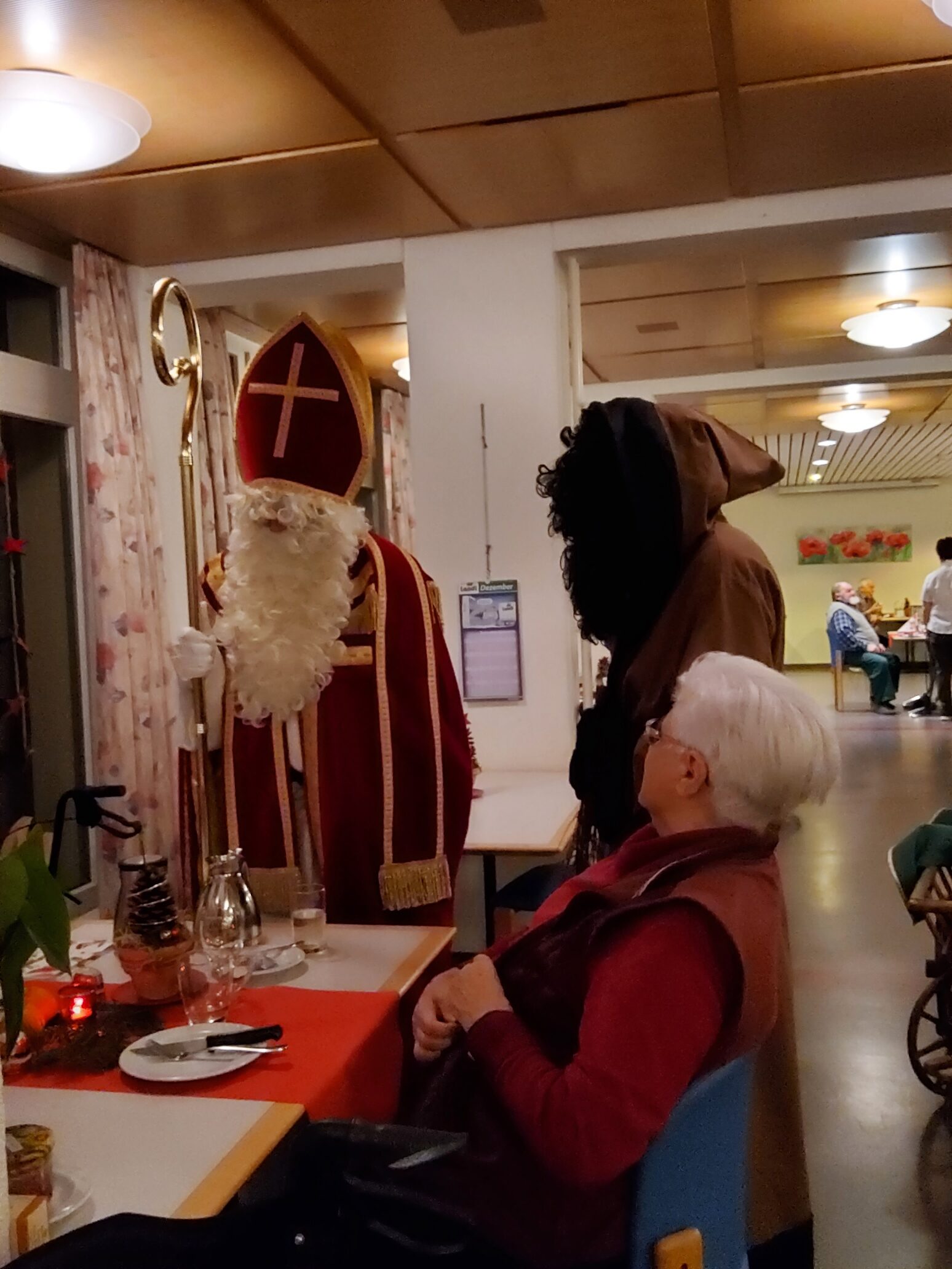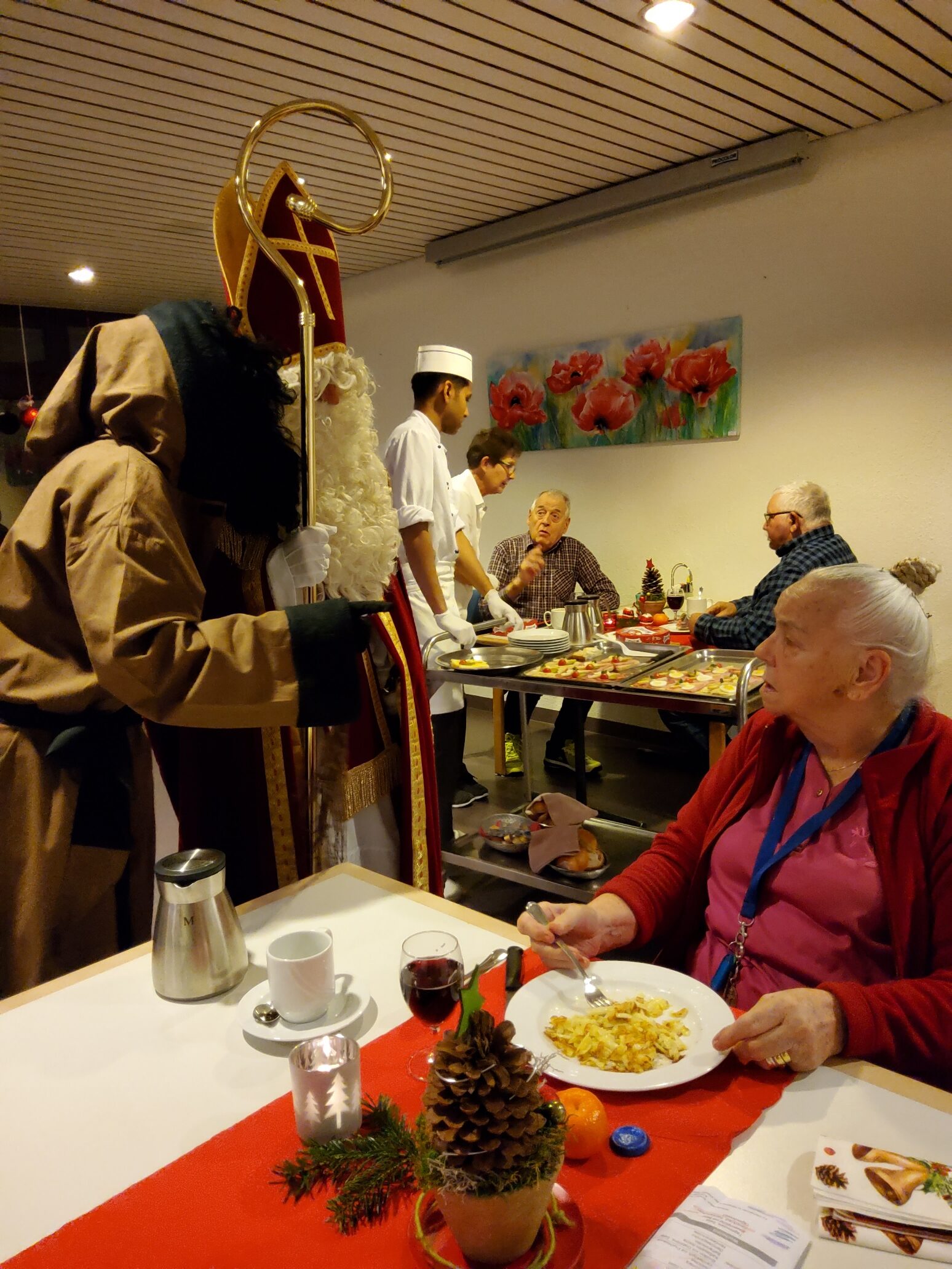 Am 6. Dezember 2022 hat das Alters- und Pflegeheim Riva besuch vom Samichlaus und seinem Gefährten dem Schmutzli erhalten. Sie kamen mit einem Wagen voller Überraschungen und brachten die Augen der Menschen im Riva zum Leuchten und zauberten ein Lächeln auf die Gesichter. Die Bewohner*innen haben sich sehr über den Besuch gefreut und konnten auch das eine oder andere mit dem Samichlaus austauschen. Es war ein schöner und stimmungsvoller Abend mit viel Freude in aller Gesichter. Herzlichen Dank, lieber Samichlaus und lieber Schmutzli, für Euren Besuch und bis im nächsten Jahr!