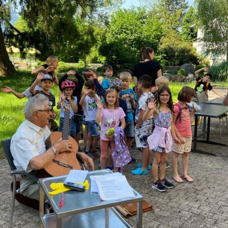 Zum 100-jährigen Jubiläum des Linth-Escher Schulhauses besuchten während einer Woche Schulkinder der 1. und 2. Klasse das Alters- und Pflegeheim Riva. Das Thema der Projektwoche: «Wie hat man vor 100 Jahren gelebt?» Mit vielen Fragen kamen die Kinder zu unseren Bewohnern und Bewohnerinnen und es wurden viele Lebensgeschichten erzählt. Für Alt und Jung waren es interessante, lebendige, spannende und abwechslungsreiche Tage mit vielen schönen Erinnerungen.