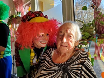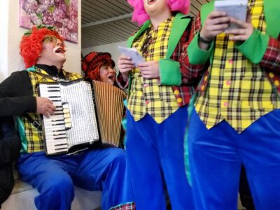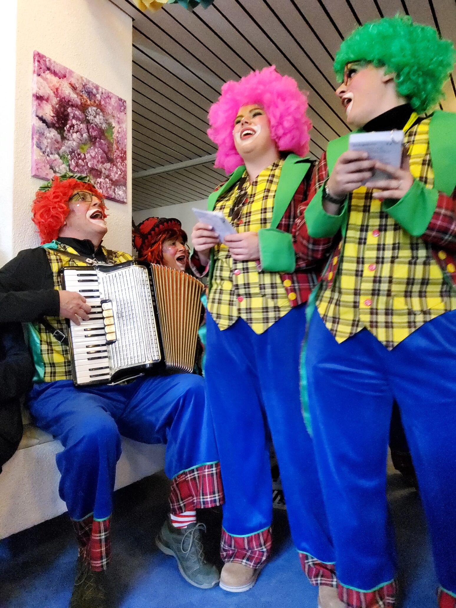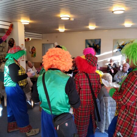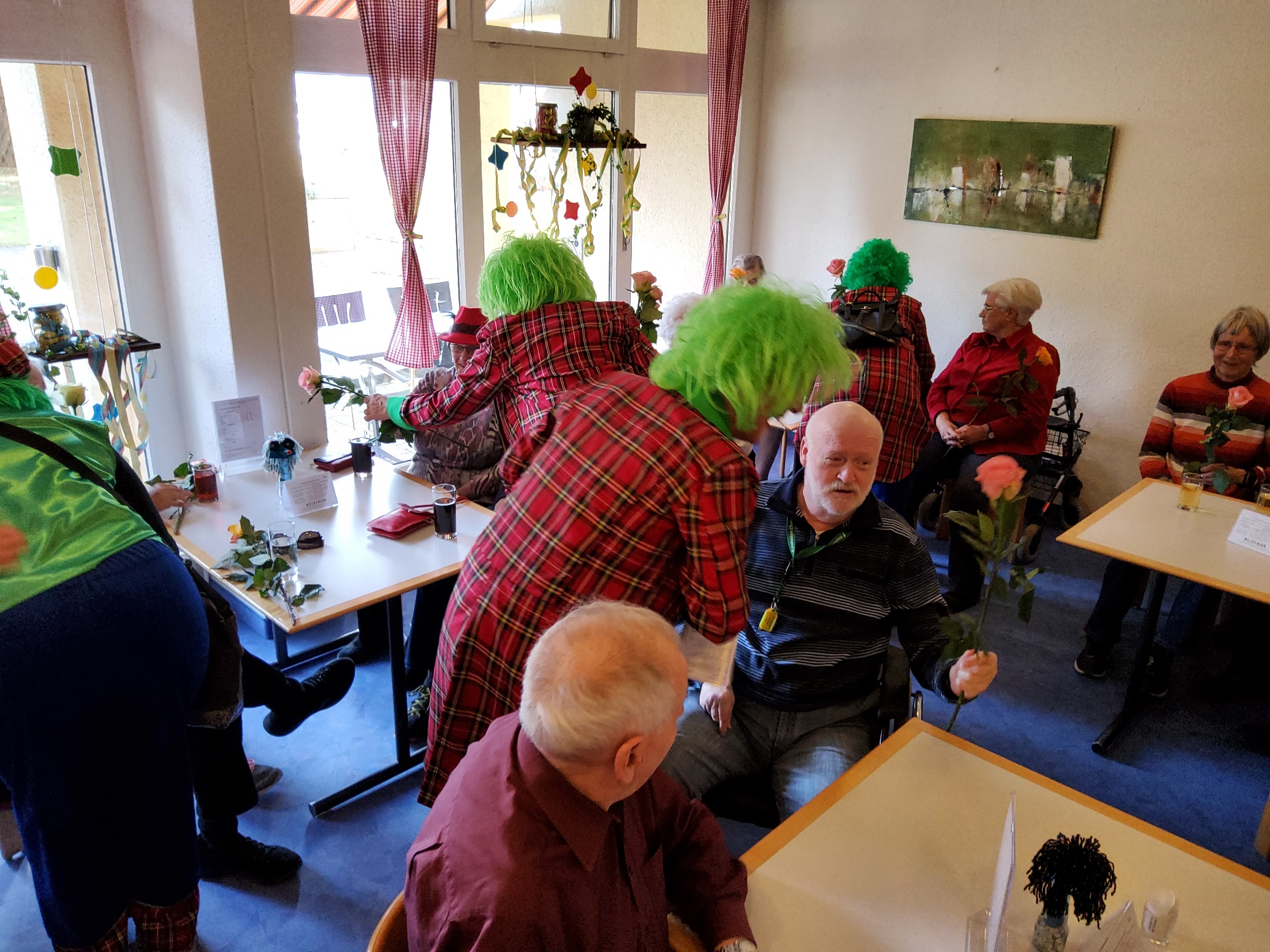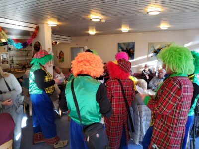 Am Samstagnachmittag kamen die singenden Clowns vorbei und brachten für die Bewohner*innen Rosen mit. Sie sorgten für viel Stimmung, so das kräftig mitgesungen und getanzt wurde.