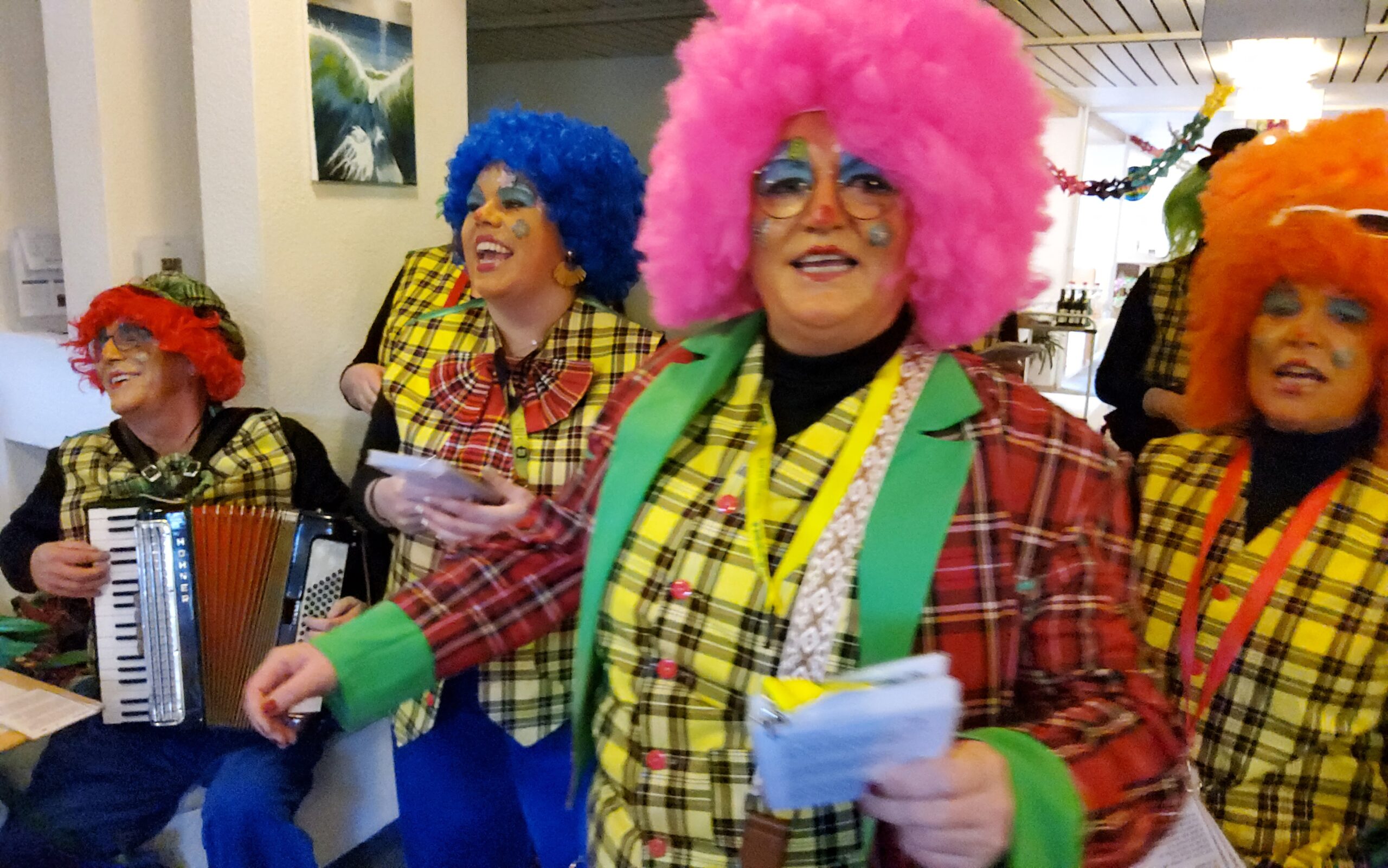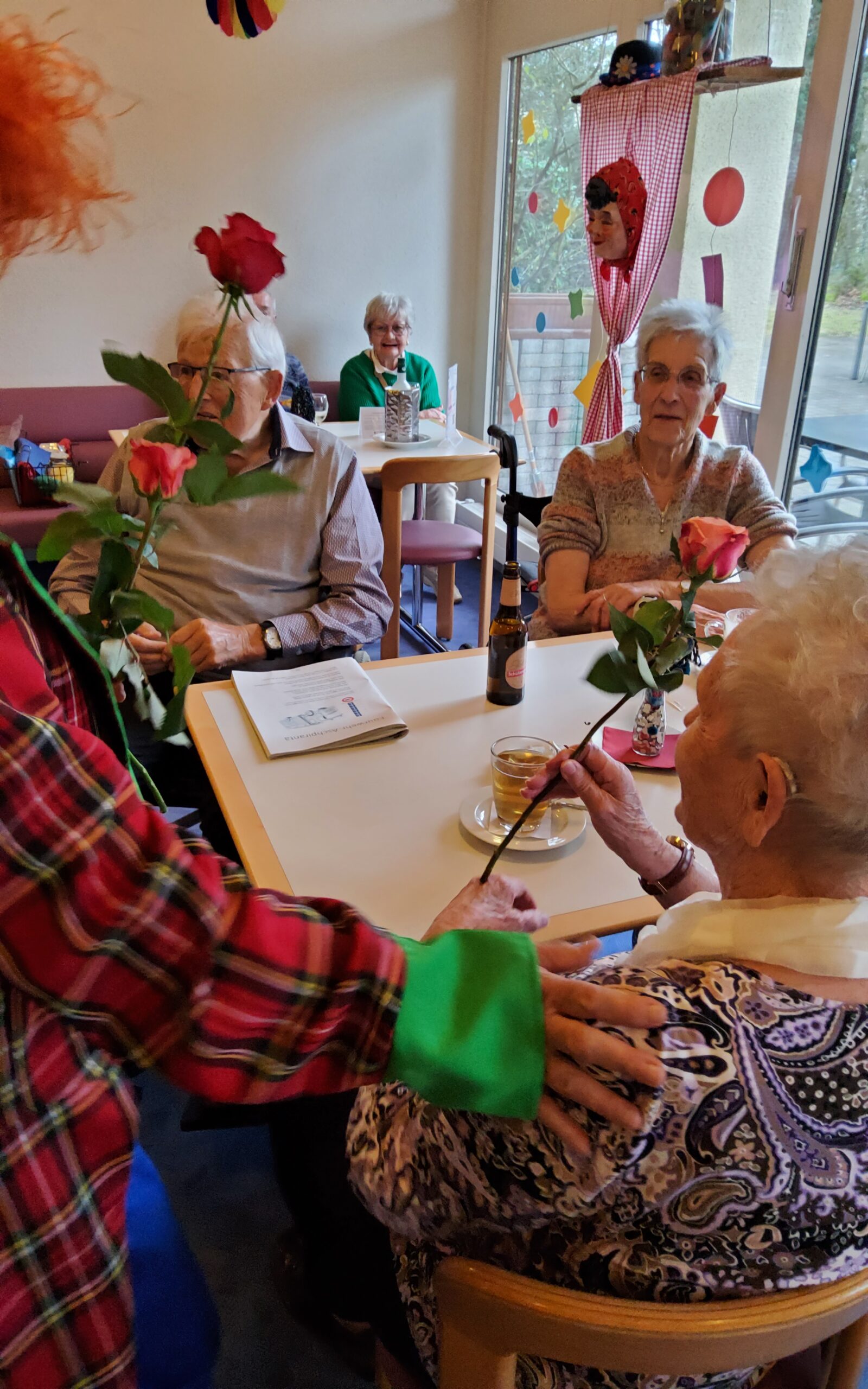 Pünktlich um 15.00 Uhr trafen die Singenden Clowns im Riva ein. Mit einem tosenden Applaus wurden sie begrüsst. Mit dabei hatten sie nicht nur Stimmung und gute Laune, denn jeder Bewohnende erhielt von den Singenden Clown eine Rose. Was für eine schöne Überraschung!