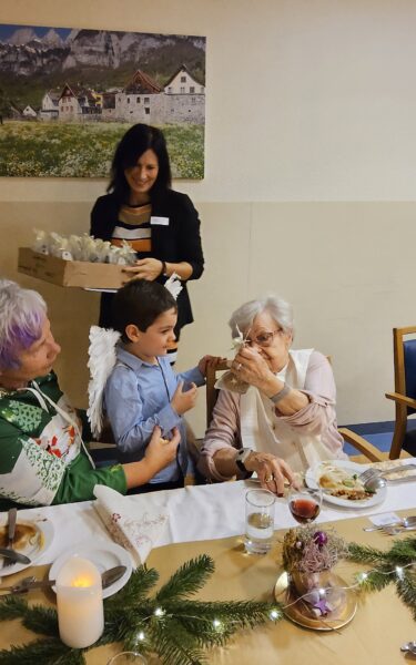 Zum Abschluss besuchten uns die Weihnachtsengel und überreichten die Geschenke. Dieser Moment wurde von vielen mit einem Lächeln und sichtbarer Freude aufgenommen und bildete einen schönen Abschluss der Feier.