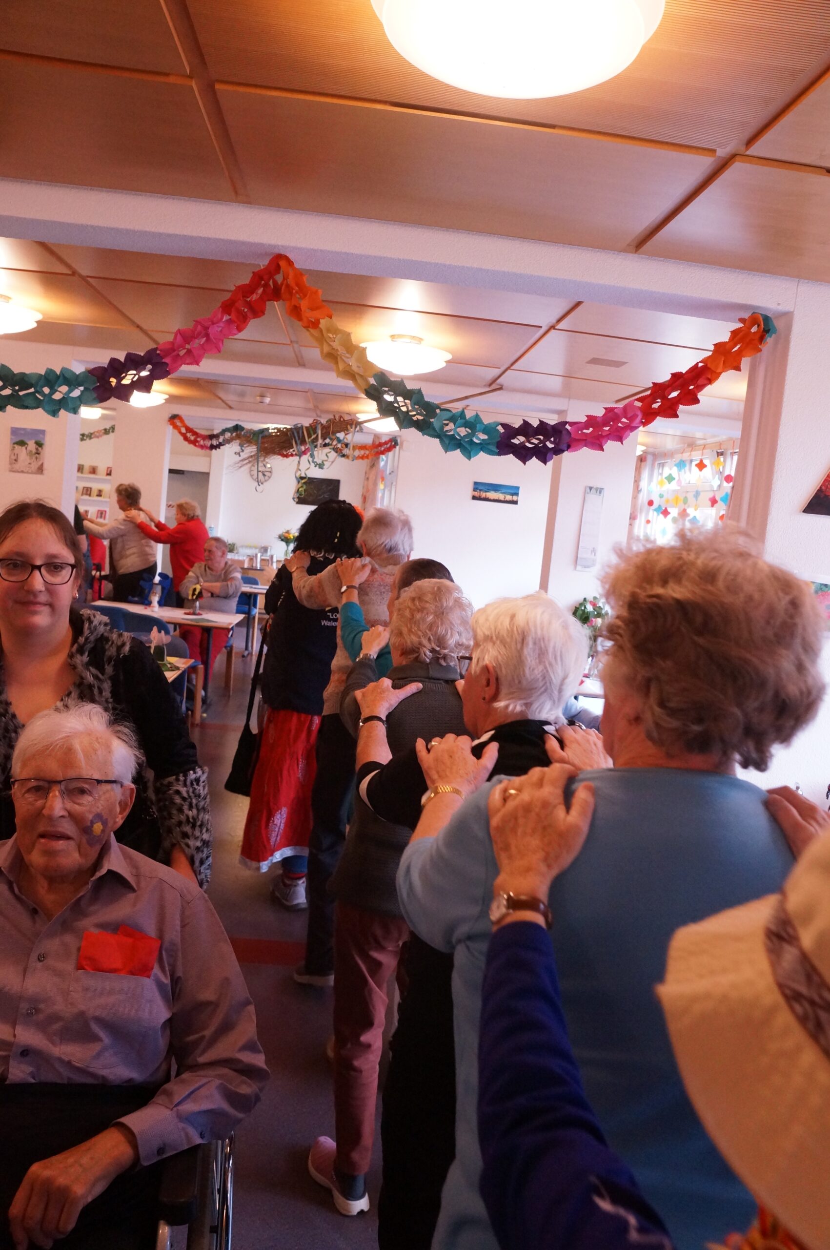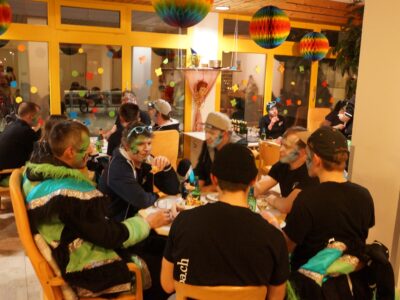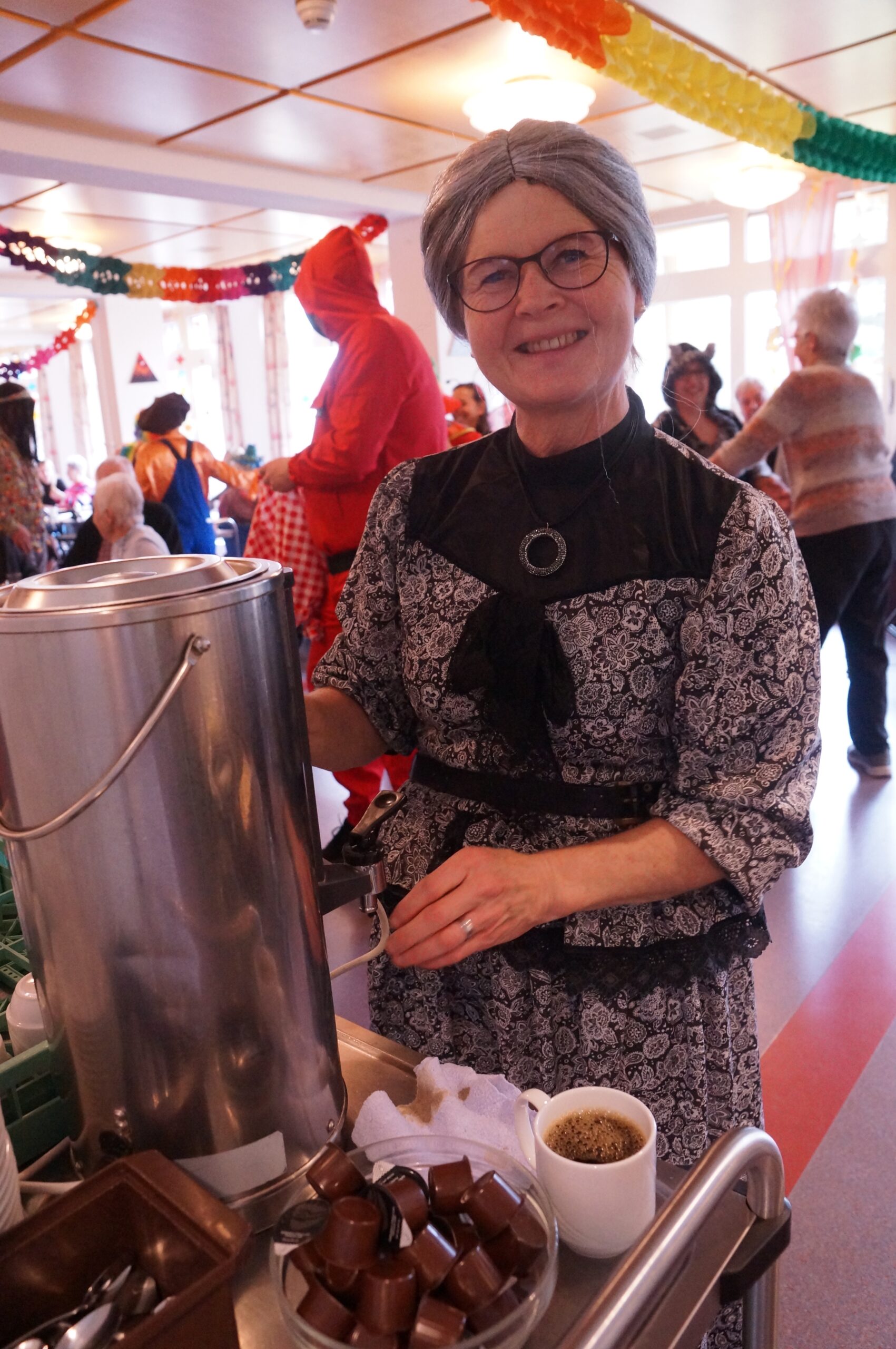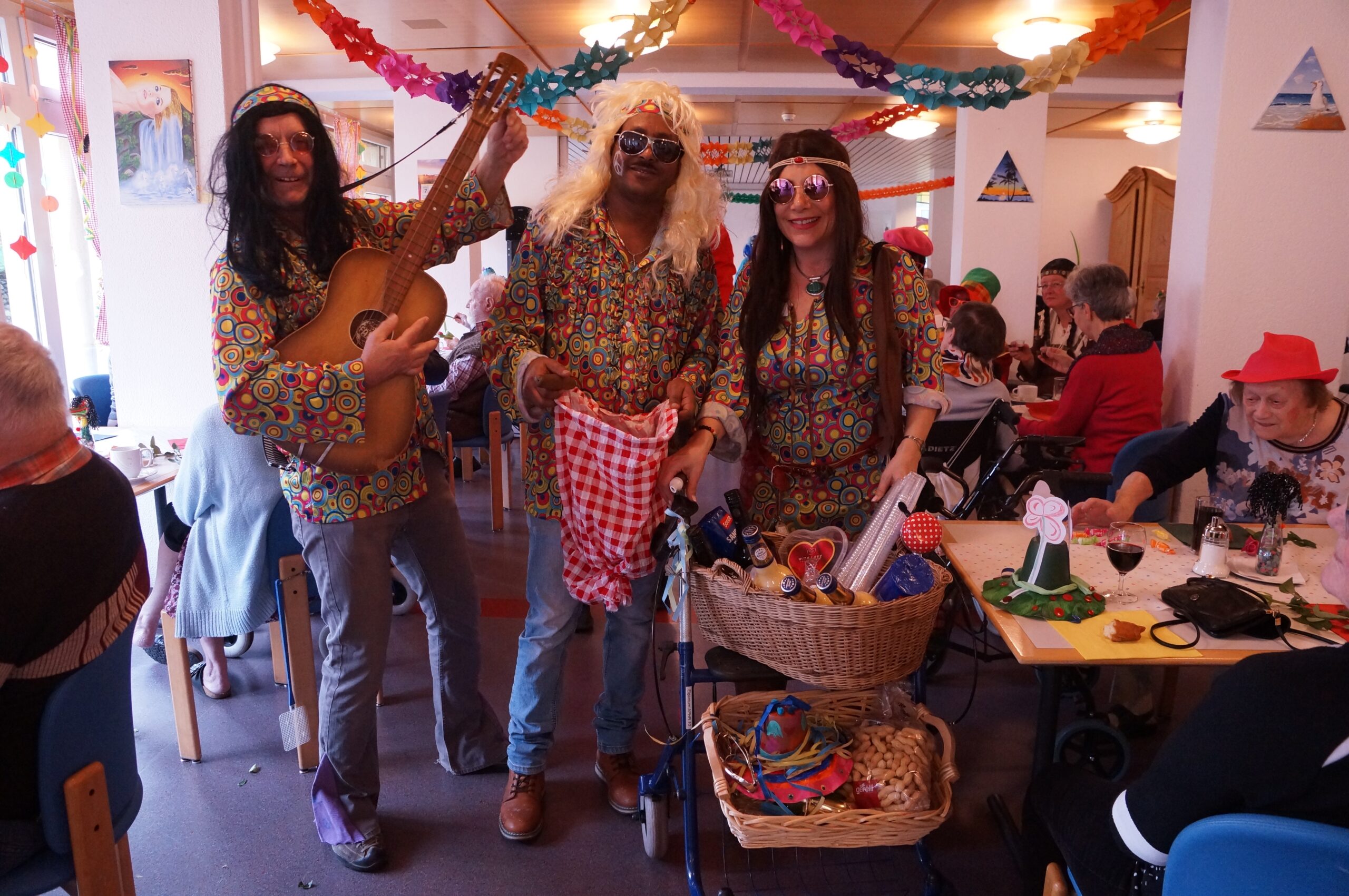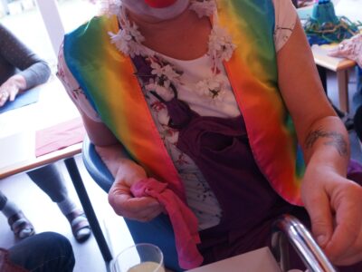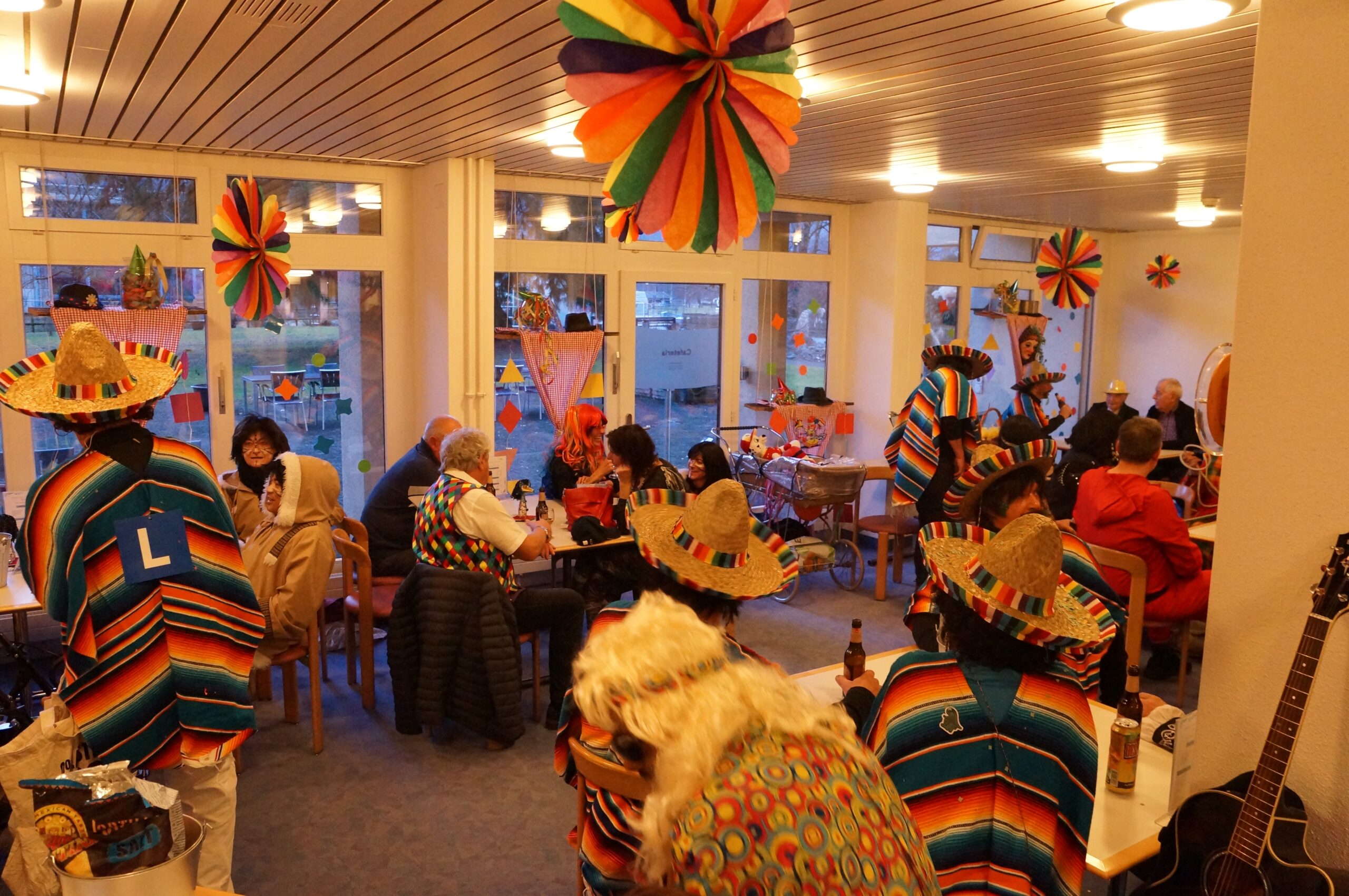 Ab 14.30 Uhr am Schmutzigen Donnerstag sorgte Werni Romer mit seinem Schifferklavier für eine ausgelassene Stimmung bei Kaffee und Fasnachts-Gebäck. Und so mancher (verkleideter oder unverkleideter) Besucher kam vorbei, um das bunte Treiben im APH Riva zu begleiten. Die Feierlichkeiten gingen bis zum Abendessen weiter. Gegen 18.00 Uhr brachten die Guggenmusiker Schattäbachfäger richtig Schwung in unseren Speisesaal!