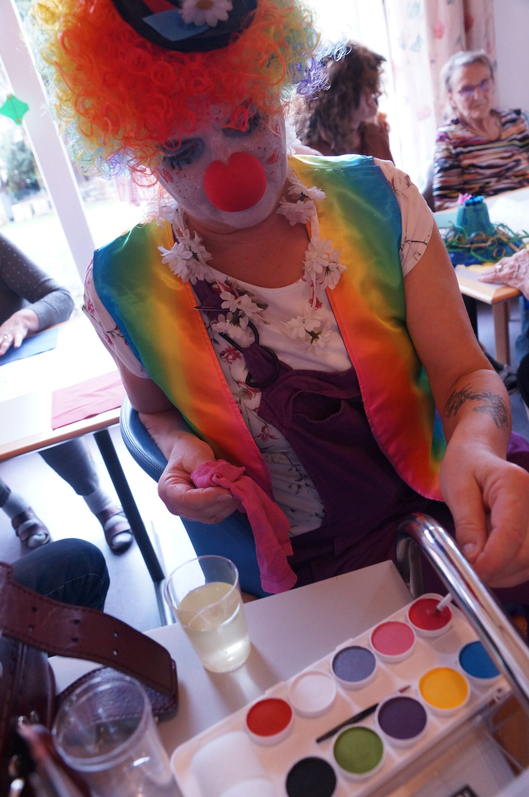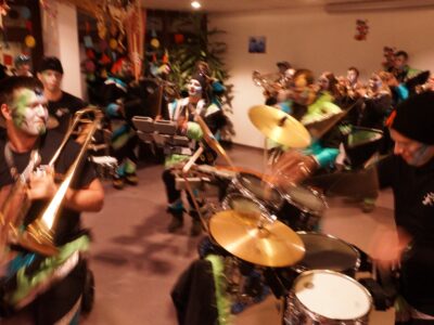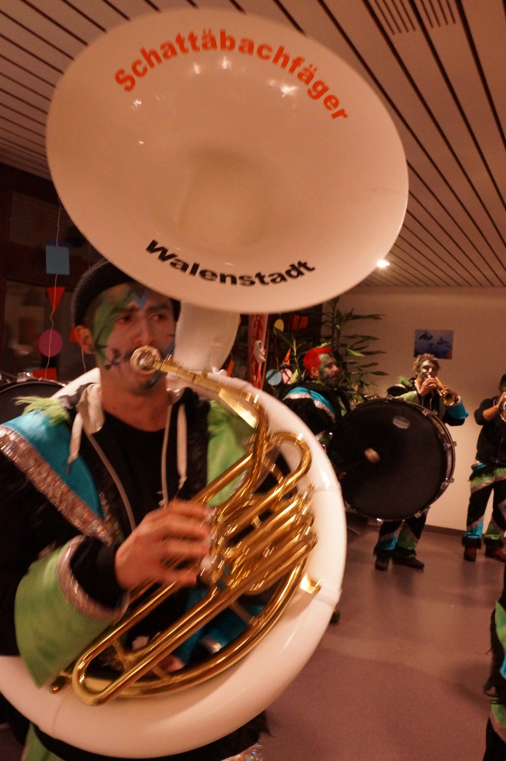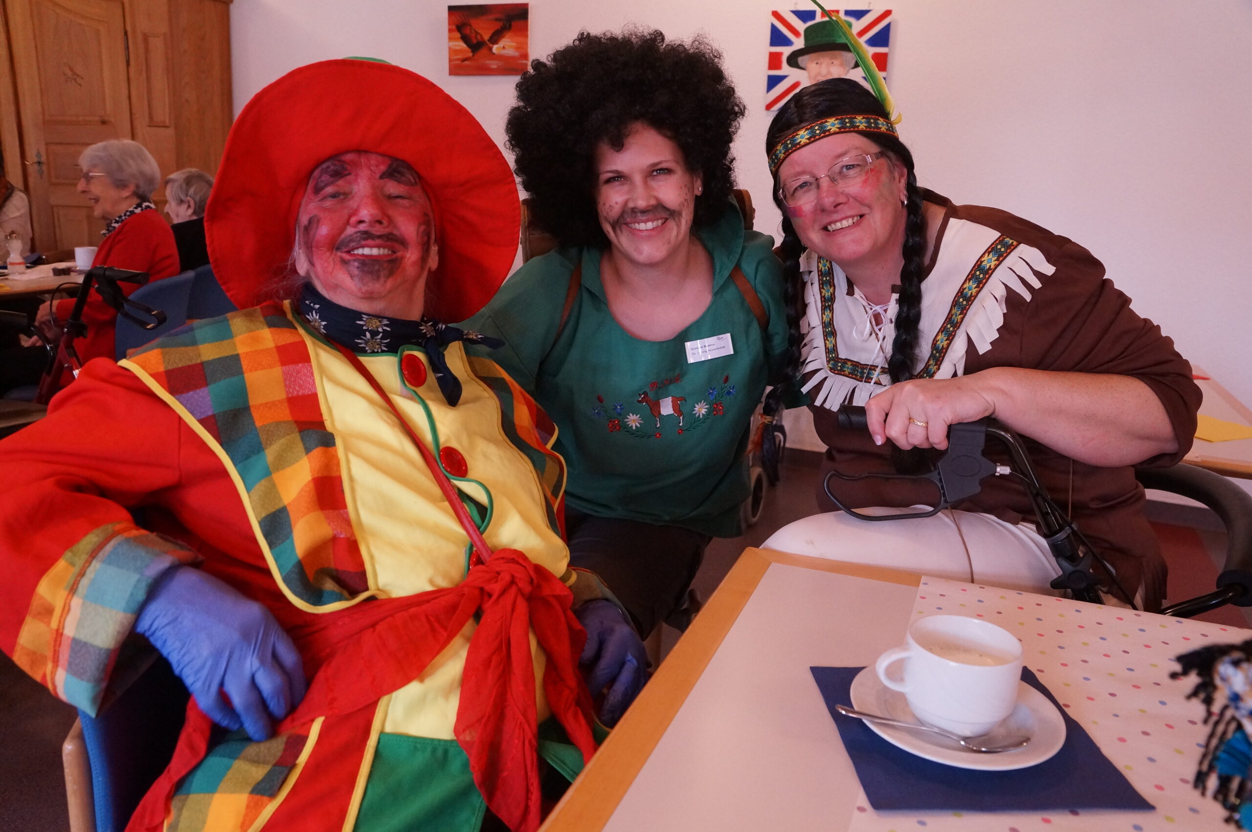 Ab 14.30 Uhr am Schmutzigen Donnerstag sorgte Werni Romer mit seinem Schifferklavier für eine ausgelassene Stimmung bei Kaffee und Fasnachts-Gebäck. Und so mancher (verkleideter oder unverkleideter) Besucher kam vorbei, um das bunte Treiben im APH Riva zu begleiten. Die Feierlichkeiten gingen bis zum Abendessen weiter. Gegen 18.00 Uhr brachten die Guggenmusiker Schattäbachfäger richtig Schwung in unseren Speisesaal!