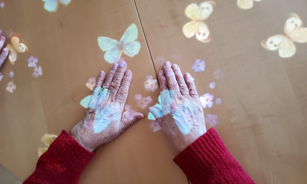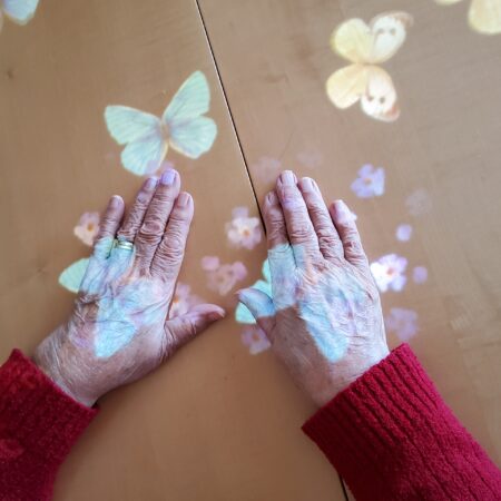 Tovertafel – noch nie gehört? Wir bringen Licht ins Dunkel: Die Tovertafel der Firma Dividat ist ein interaktives Spielgerät, das speziell für ältere Menschen mit kognitiven Beeinträchtigungen oder Demenz entwickelt wurde. Aus einem an der Decke montierten Sensor werden bewegte Formen, Bilder, Rätsel etc. auf eine beliebige Öberfläche – z.B. einen Tisch projiziert. Die interaktiven Projektionen reagieren auf die Bewegungen der Benutzer und regen sie dazu an, auf spielerische Weise zu interagieren. Die Interaktion widerum bringt eine vielzahl von positiven Effekten mit sich. Dies sind z.B. die Förderung kognitiver Fähigkeiten, eine emotionale Stimulation und die soziale Intertaktion (da man es sowohl in einer Gruppe oder allein mit der Betreuungsperson spielen kann … und nicht zu vergessen die Zaungäste, welche sich als Zuschauer einfinden).