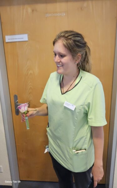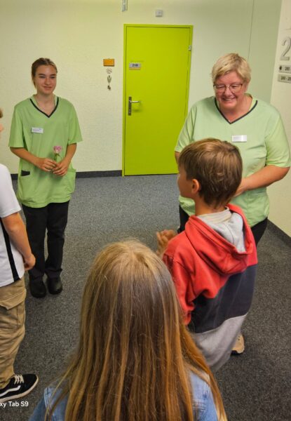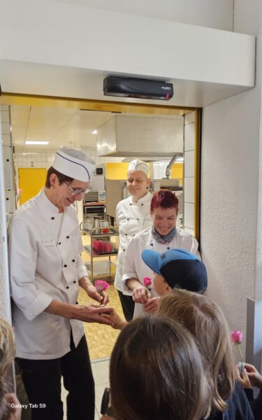 Als Dankeschön und Ausdruck ihrer Dankbarkeit erhielt jede Mitarbeiterin und jeder Mitarbeiter eine Rose von den Schülern überreicht. Mit dieser kleinen Geste zauberten die Kinder den Mitarbeitenden ein Lächeln ins Gesicht und zeigten so ihre Wertschätzung auf eine ganz besondere Weise.